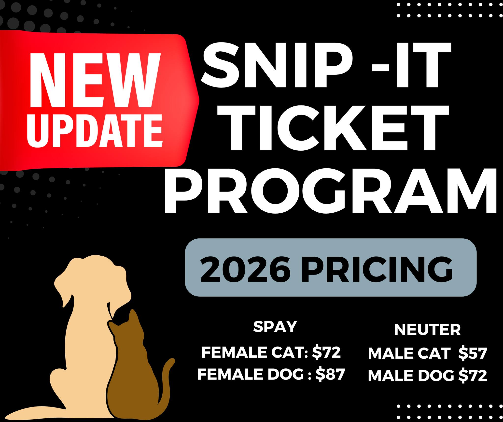 The Calhoun County Commission in collaboration with Alabama Spay/Neuter, the Snip-It Ticket Program commenced on January 2, 2019. Since 2019, thousands of vouchers have been distributed across the County.